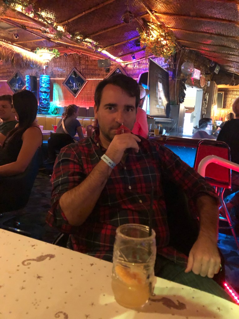 We got this weekend off to a great start by visiting Sip n’ Dip, a local tiki bar with real, live mermaids! Chris approves.