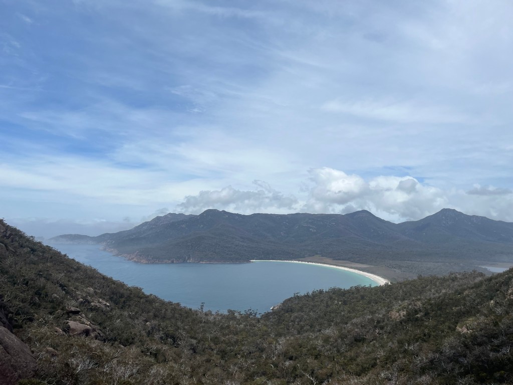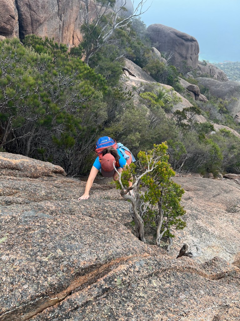 The next day we headed to Freycinet National Park. Unfortunately the weather didn’t quite hold out for us but we still did a very cool (and a little scary) hike/climb up Mt Amos. Not much to see at the top, but lower down at the Wineglass Bay lookout we had some nice views of the beach.