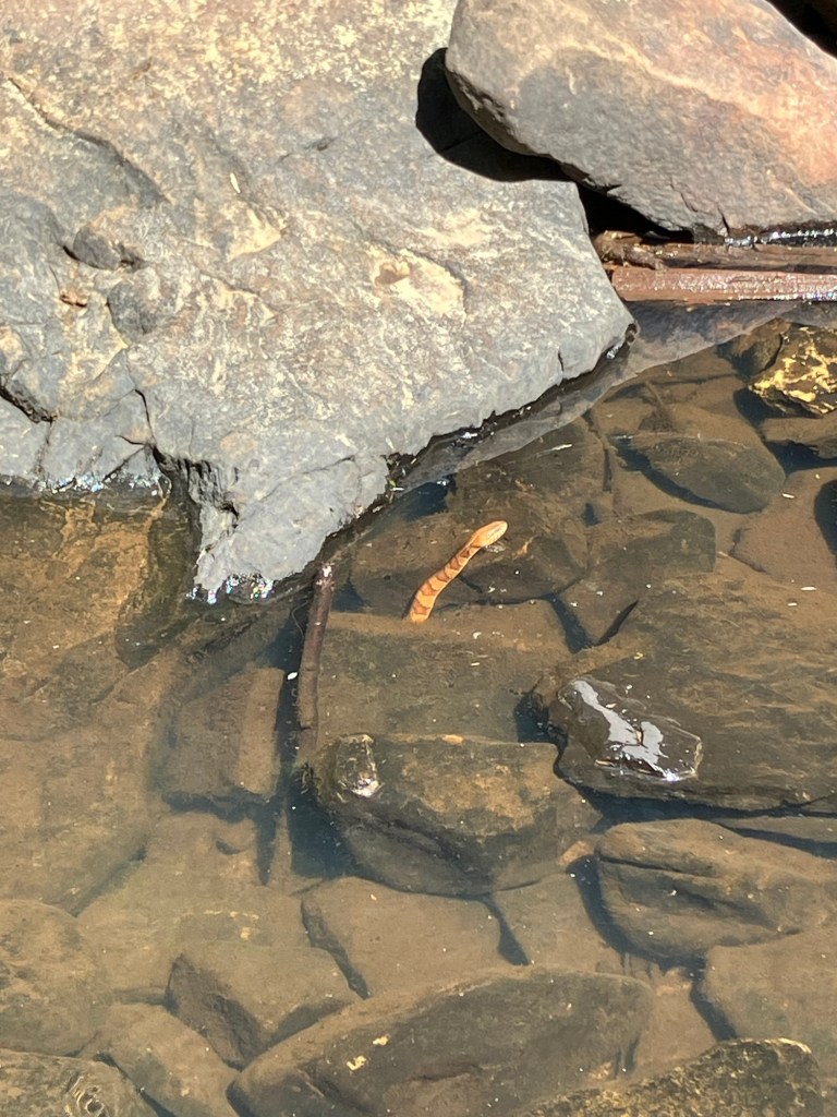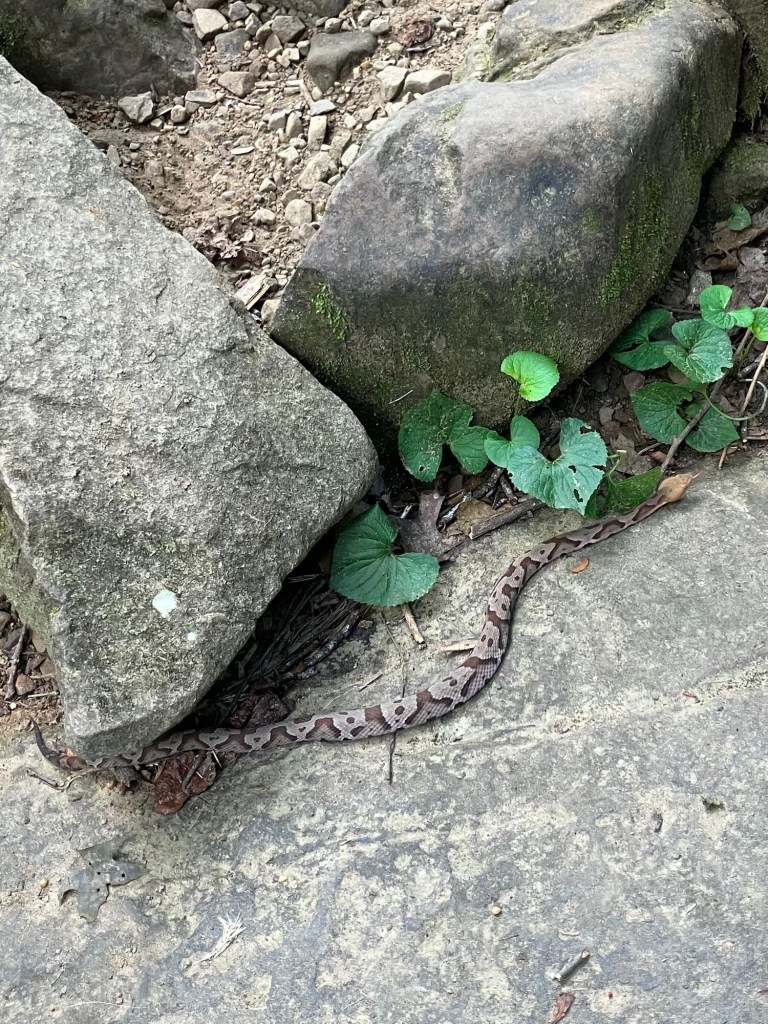 Then Signal Mountain out to Edward’s Point Overlook. There was a cool old hanging bridge and we saw a couple of probably Copperhead snakes at Rainbow Lake on the way. It was very creepy to see how fast they can swim.